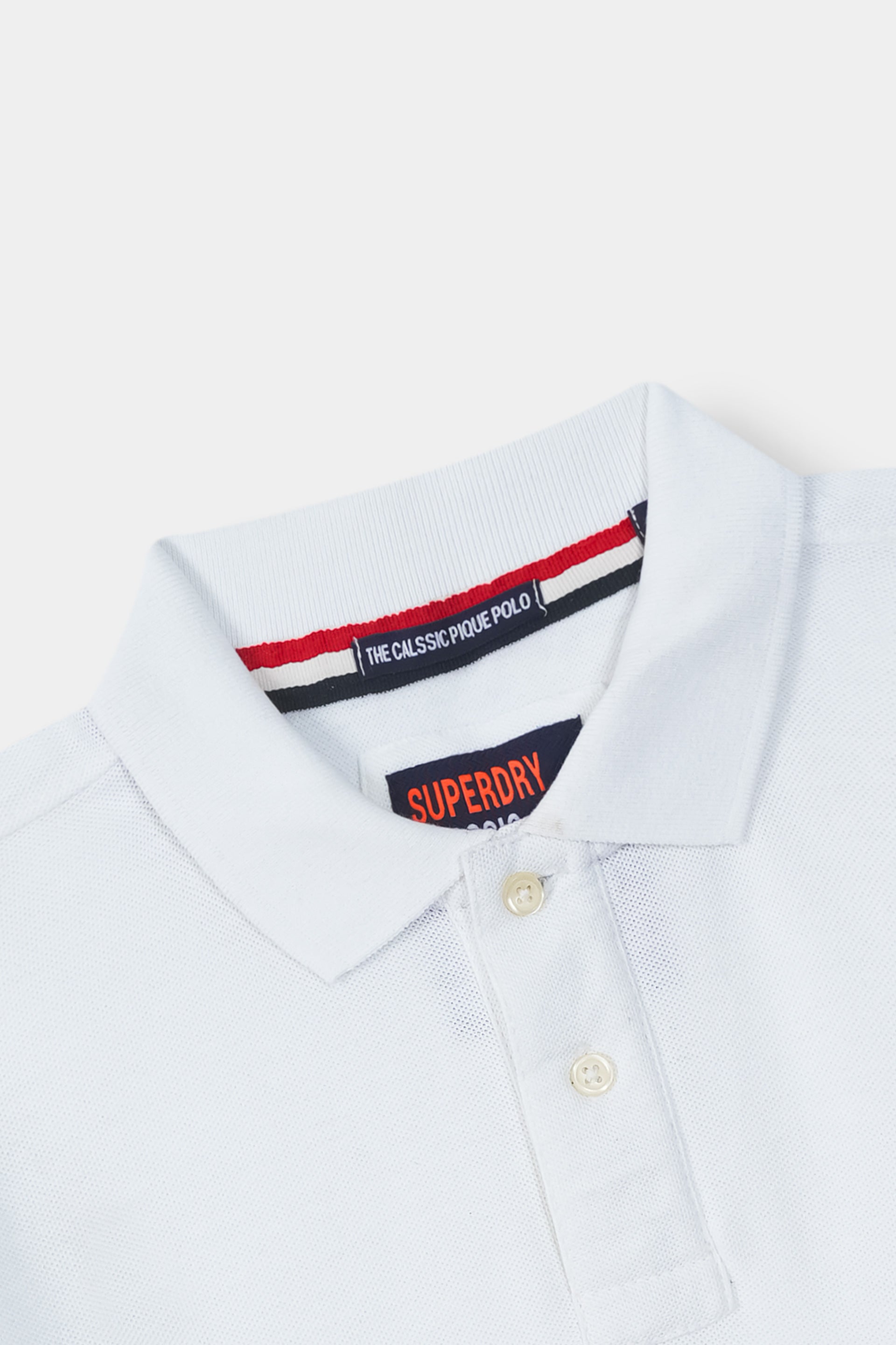 This essential White polo blends quality craftsmanship with a clean, contemporary design, making it a versatile staple for any season. Perfect for pairing with jeans, chinos, or shorts, it offers an instantly smart and put-together look high-quality men's White Superdry polo, Superdry regular fit polo shirt, breathable summer polo.