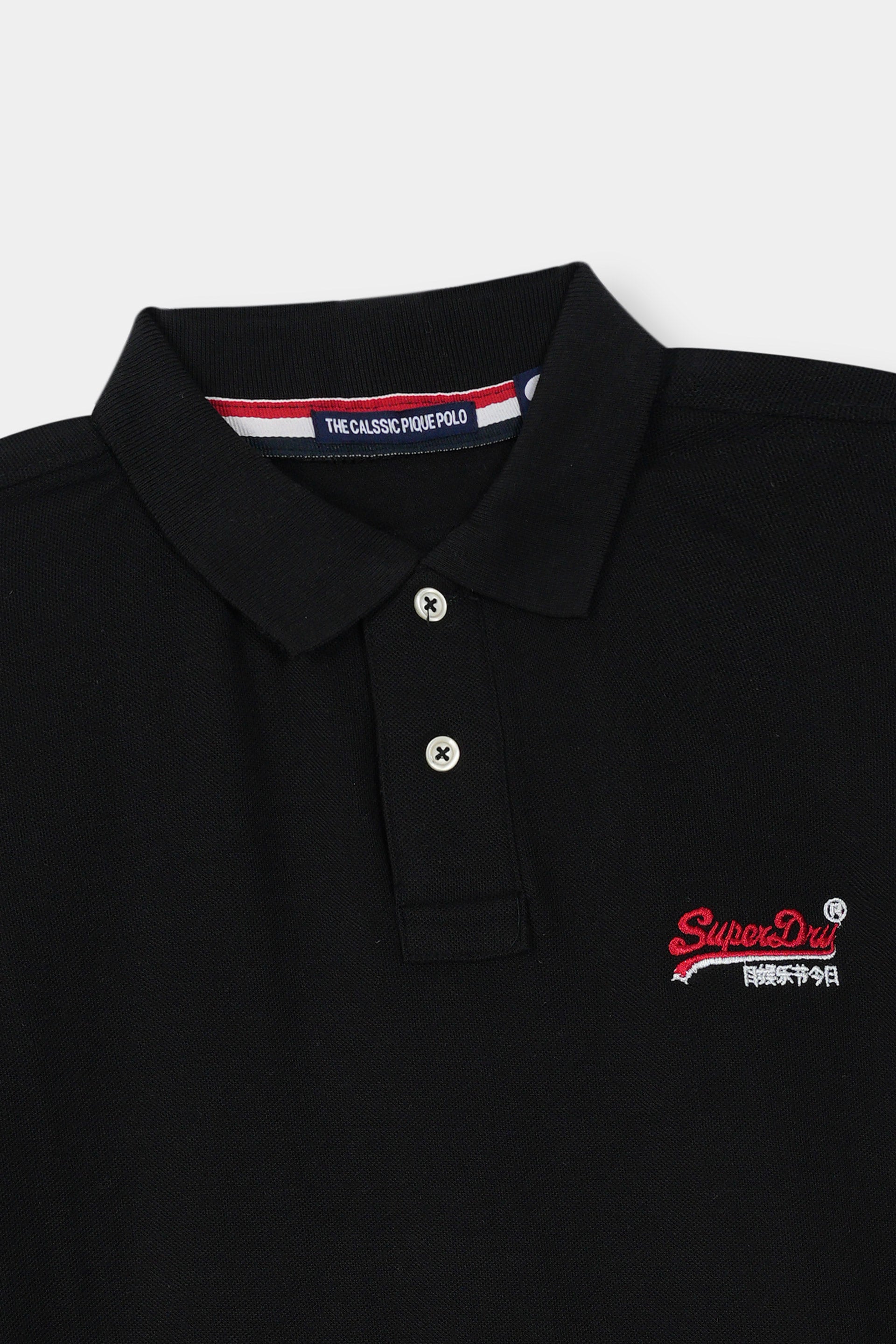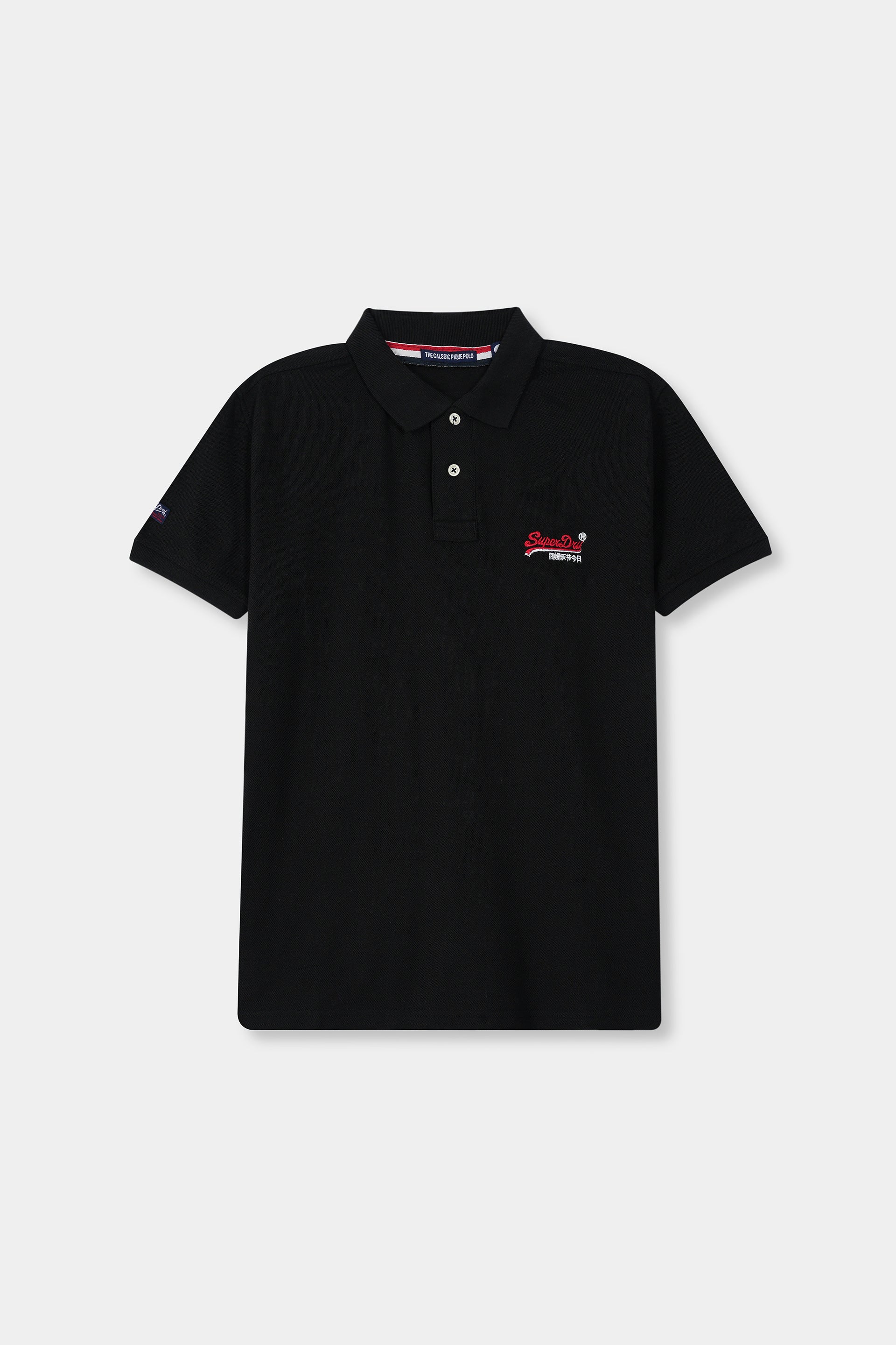 This essential black polo blends quality craftsmanship with a clean, contemporary design, making it a versatile staple for any season. Perfect for pairing with jeans, chinos, or shorts, it offers an instantly smart and put-together look high-quality men's black Superdry polo, Superdry regular fit polo shirt, breathable summer polo.